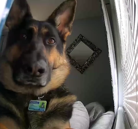The video caught a three-year-old German shepherd who is known as Sasha being perplexed about the camera. While the owner was out somewhere with the monitor of the camera, he got a notification about some motion with the camera.