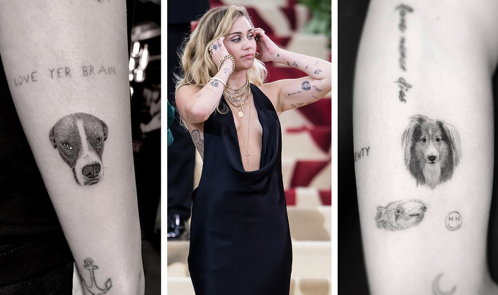 Although she has many tattoos, two of them are for acknowledging her dogs Emu and Mary Jane’s forever presence with her.