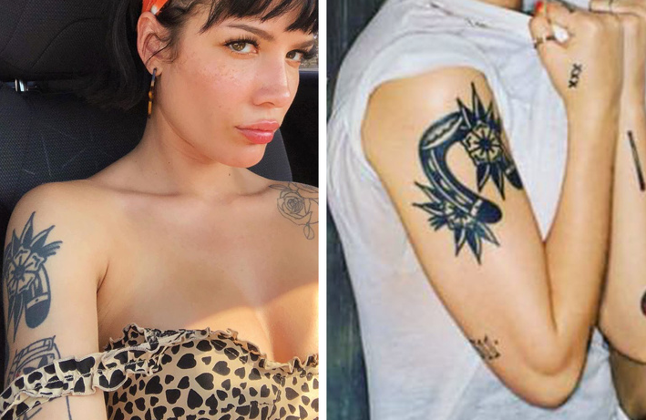Singer Halsey inked her arm with an upside-down horseshoe that is considered as a bad omen to signify that she believes in hard work and not in luck.