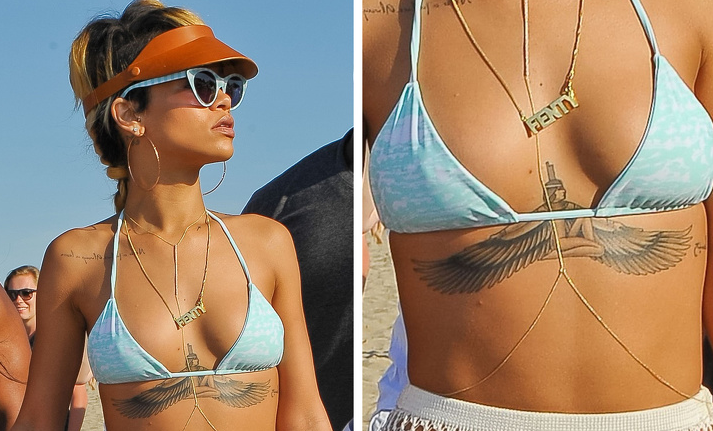 Rihanna boasted a massive tattoo of Isis, an Egyptian goddess, in 2012 on her chest to pay tribute to her grandma.