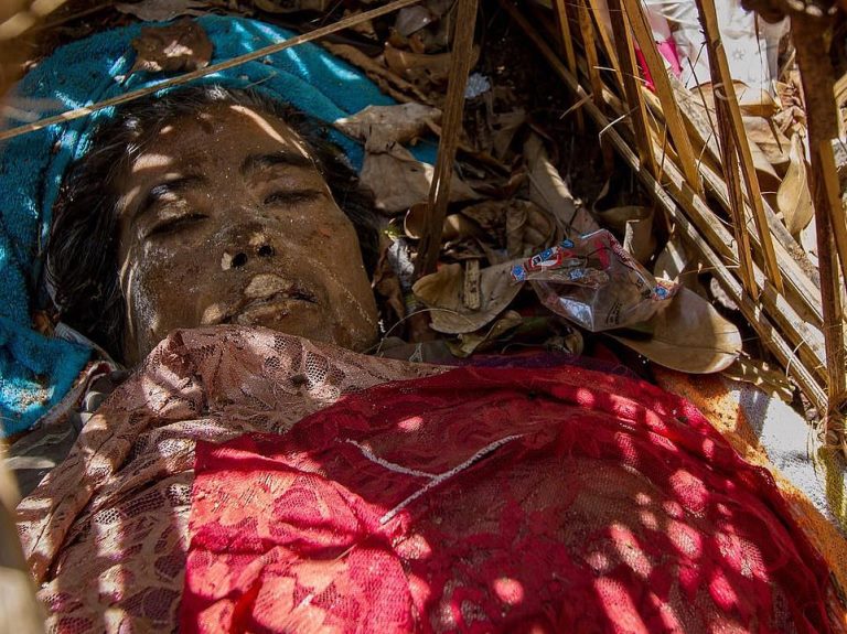 People from Balinese village in Indonesia are laid to rest in bamboo cages under a sacred tree. Their corpses are left to rot in the fiery heat.