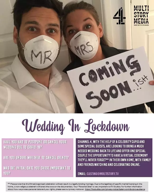 Channel 4, which is part of ITV Studios, is looking for a couple who had to throw out all the plans of their big day, owing to the virus lockdown.