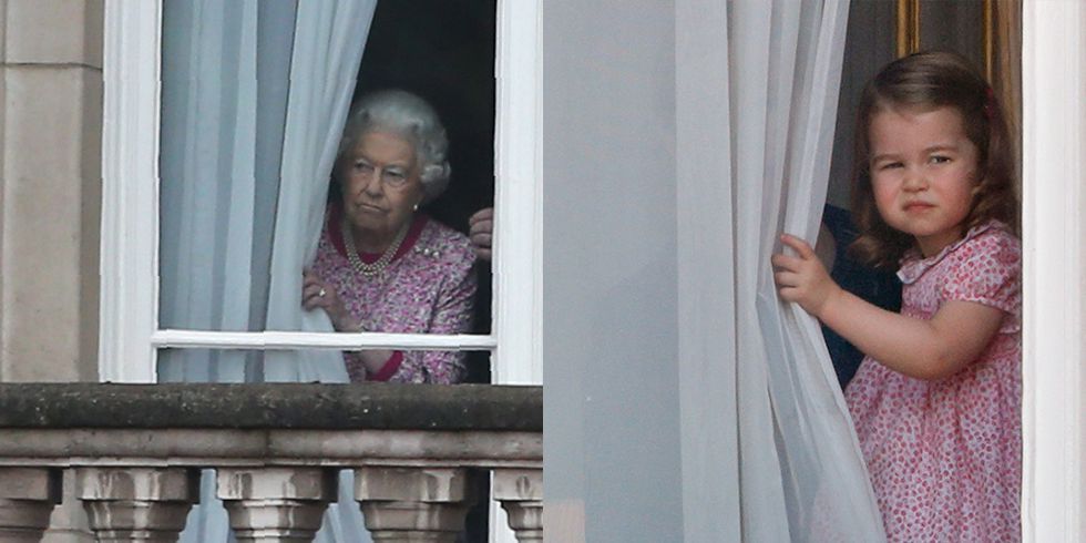 2. The right side photo show little Princess Charlotte having fun with the balloon display at a children’s party for military families. The left picture is of The Queen from a 1928 portrait.