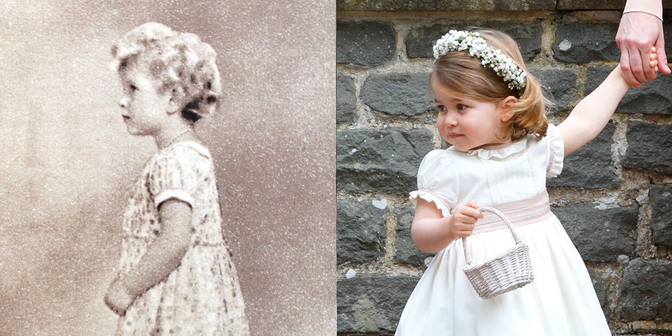 5. In the right side photo, young Princess Elizabeth is posing for a portrait while the right side picture shows little Princess Charlotte attending her aunt Pippa Middleton‘s wedding to James Matthews on May 20, 2017 in Englefield Green, England.