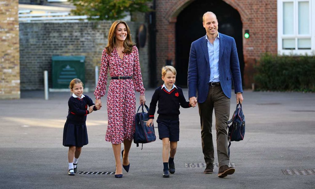 The Duke and Duchess of Cambridge arrived for their daughter’s first day at school and the family was first greeted by Helen Haslem, head of the lower school.