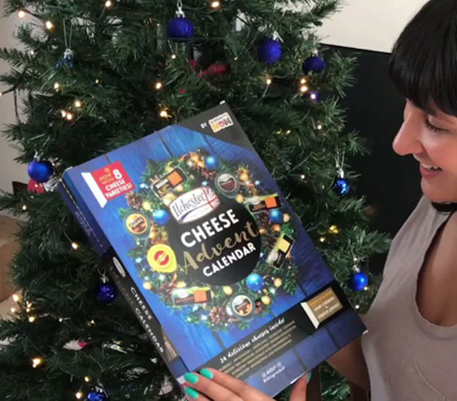 She posted a short video on Twitter and wrote, “The Cheese Advent Calendar is back this year, now with more cheeses and in more countries! Also ridiculously excited to reveal my new invention: The Cheese Cracker!”