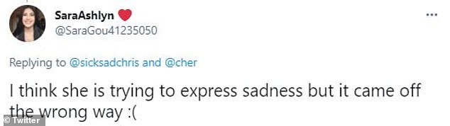 Another adds in response, “I think she is trying to express sadness but it came off the wrong way,”