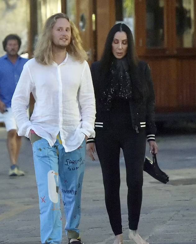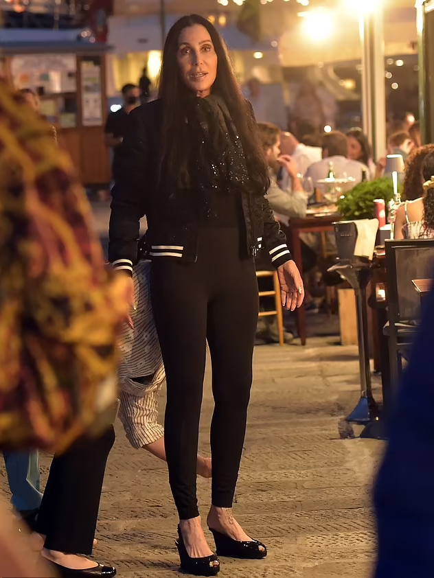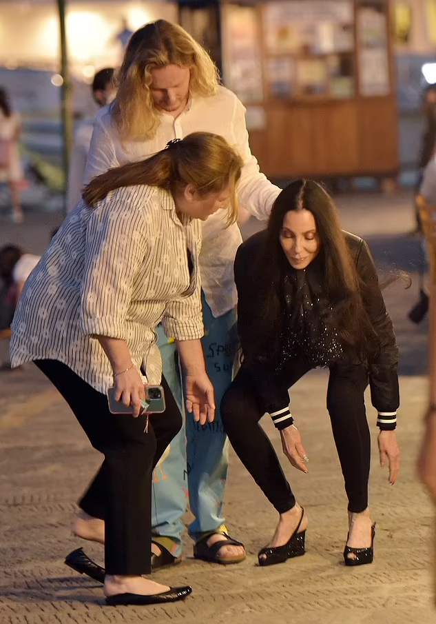 To avoid any stumbles, Cher walked through the Portofino streets barefoot.