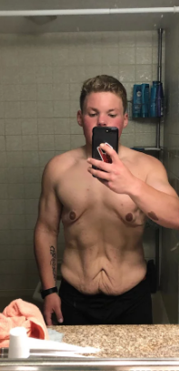 Although he gained a few pounds again because of eating more while training, he had lost 184 pounds and is now about half his previous weight.