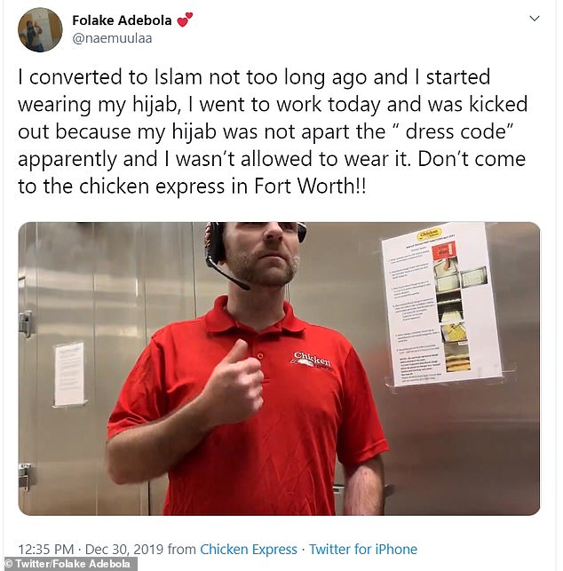 The woman later told CNN that the manager asked her to ‘Take off anything that doesn’t involve Chicken Express’. She knew he was talking about her Hijab.