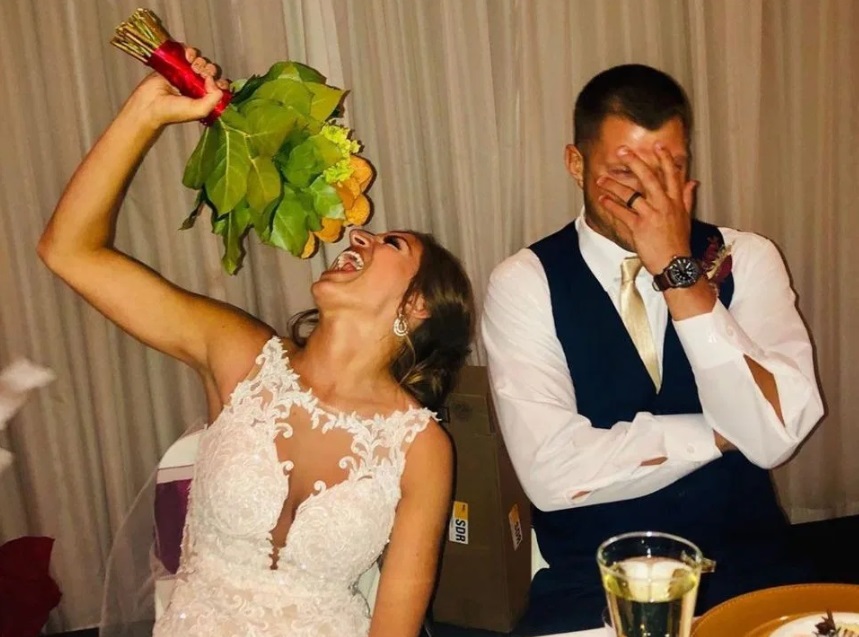 And surprising everyone on her wedding day, Blair donned a chicken nugget bouquet and proudly finished it off during the reception which took place at Radisson Hotel in Ohio.