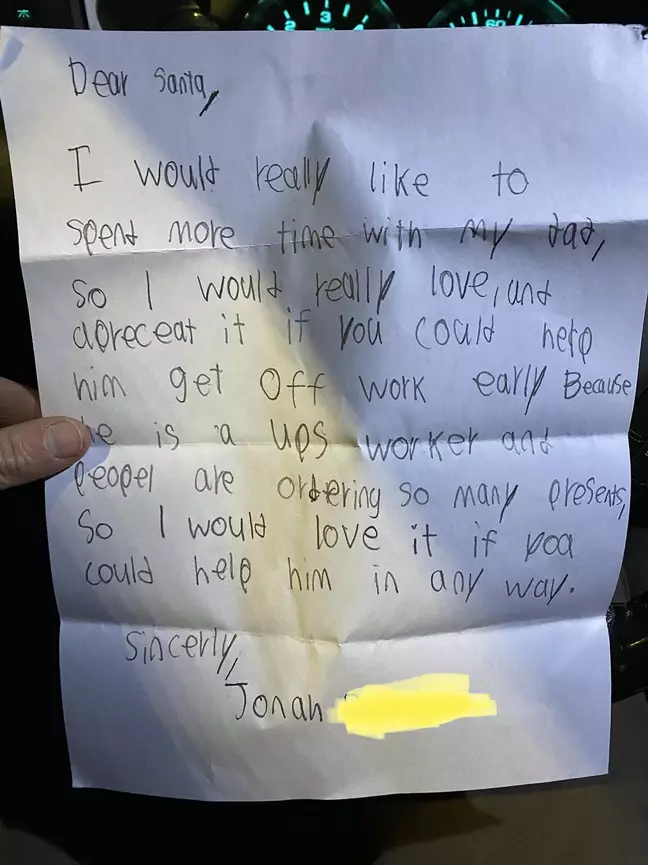 Posting a photo of the letter on Reddit, the father who works as a delivery driver wrote: “I’m a UPS driver and I cried when I opened up our son’s letter to Santa.”
