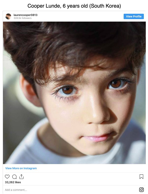 Instagram - 6 years old Cooper Lunde from South Korea.