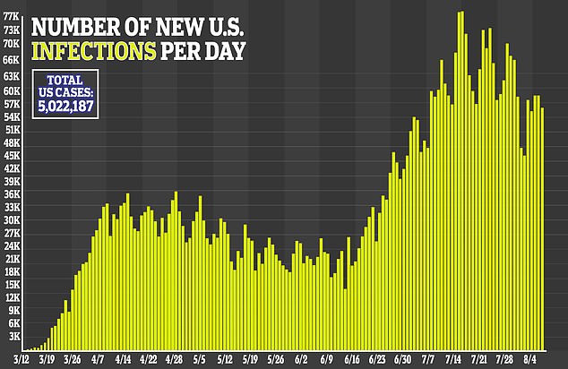97,000 children have tested positive for coronavirus in the last two weeks as schools and universities in some states reopen amid the pandemic.