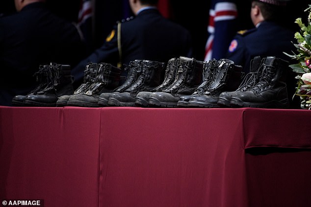 Firefighting crews from across the state traveled to Sydney’s Qudos Bank Arena for the memorial.