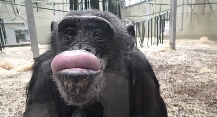 Watch this chimpanzee make funny faces below!
