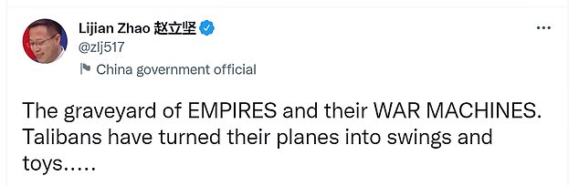 In addition, Zhao mentioned in his viral Tweet, “This is the graveyard of empires and their war machines,” where he boldly calls the fighter jets toys, signaling nothing but defeat on the part of the US.