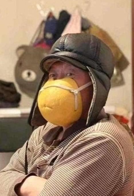 In social media posts, people were seen wearing homemade plastic helmets, bras, plastic bags, and even fruits to cover their faces while in public.