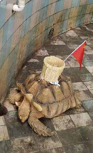 A picture coming out of a zoo in China has ignited a flame of controversies as a tortoise was seen with a basket glued on its back.