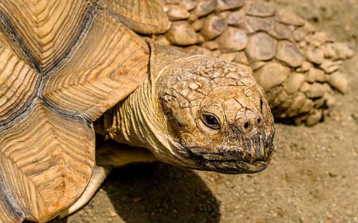 The African spurred tortoise was the center of attraction of the park and so people started throwing coins at it and to collect those coins, the staff of the zoo had glued the basket.