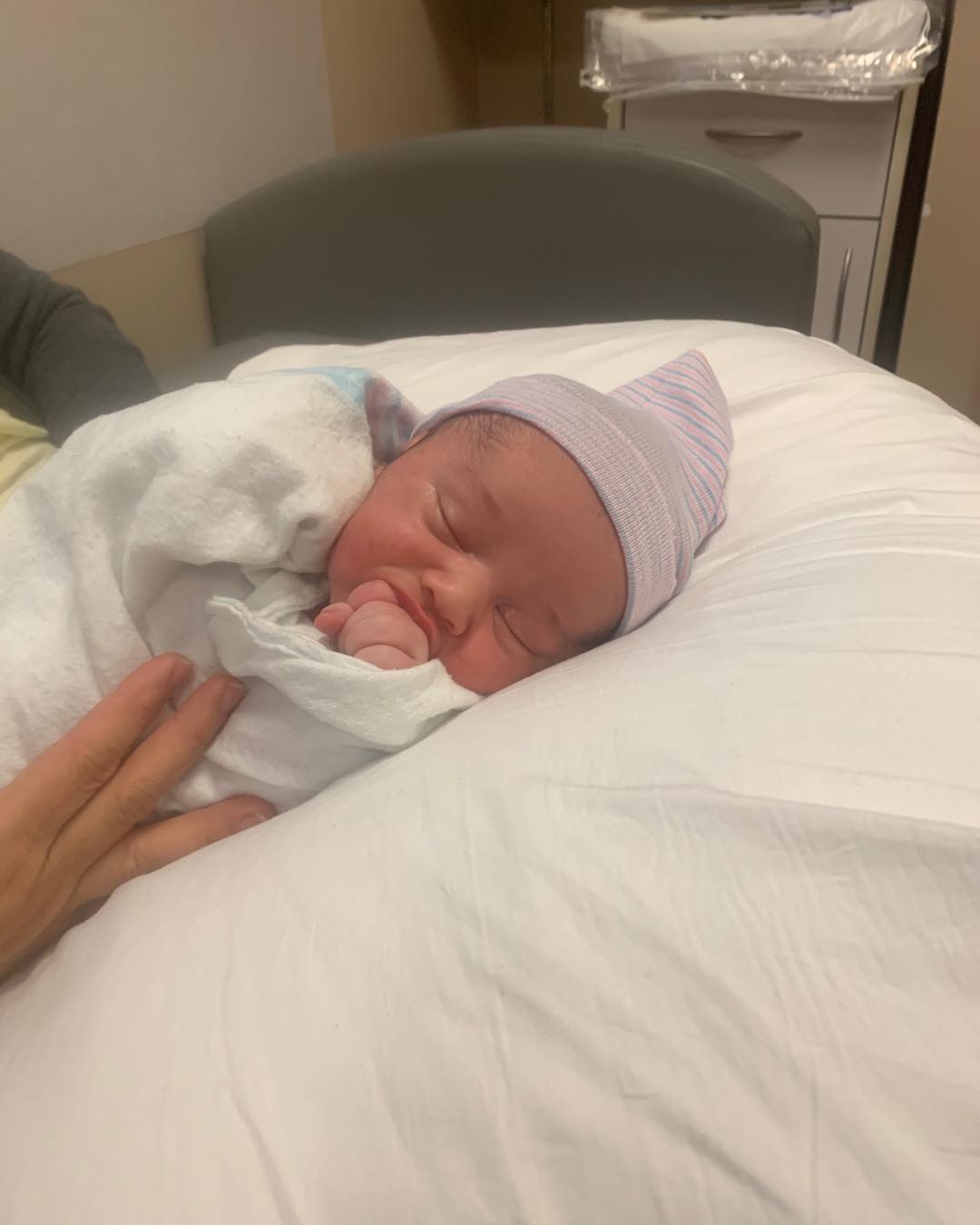 In Noth’s social media post, an adorable Keats is seen sleeping on the hospital bed with his hand pressed against his mouth.
