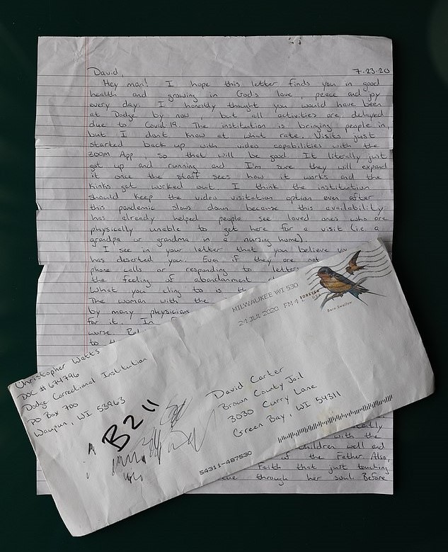 Carter, who was released on February 27, said it was back in September 2020 when Watts told him that Kessinger was sending him letters.