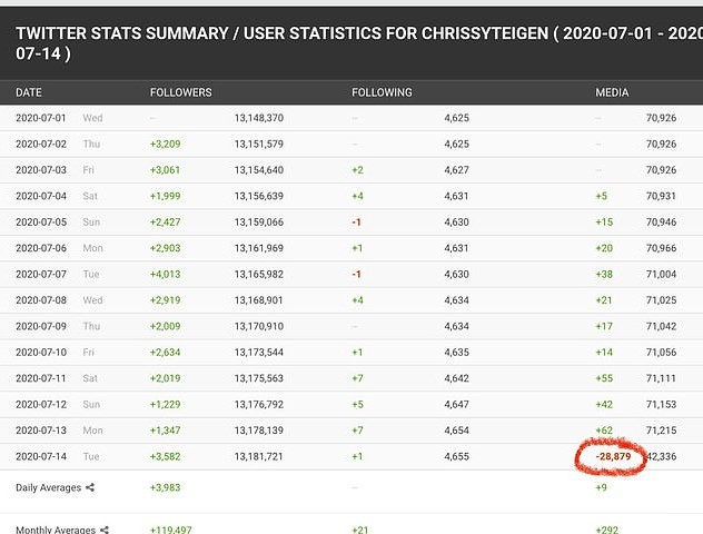 The model, who shares two children, 2-year-old Miles Theodore and 4-year-old Luna Simone, with her husband 41-year-old John Legend, replied in outrage to further claims made on Twitter. It seems that she has deleted thousands of tweets to stop trolls from digging through her past and attacking her.