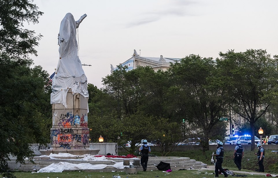Two statues of Christopher Columbus have been removed from their respective places in Chicago following a series of violent protests and clashes between the police and demonstrators.