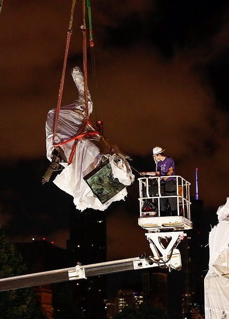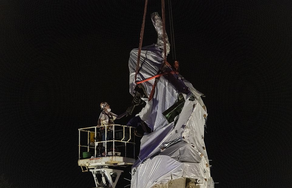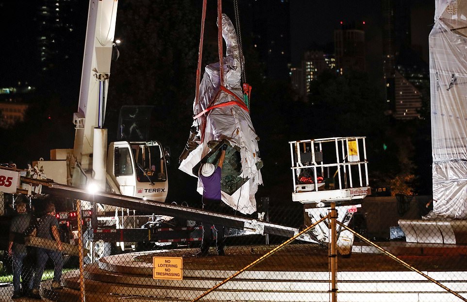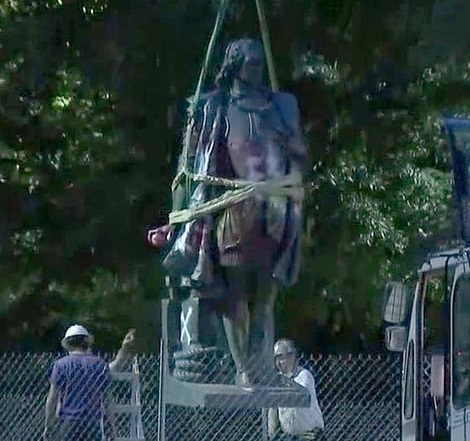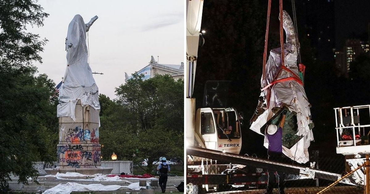The two statues of the maritime explorer were removed at around 3 am on Friday, whereas the team put to the task used a crane to lift the 33-foot-tall bronze statue located at Grant Park.