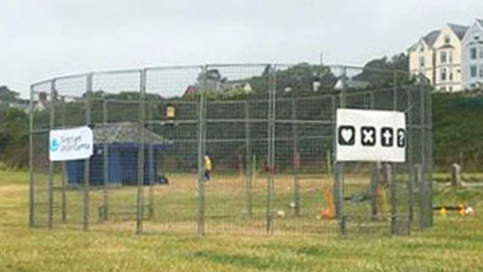 The large metal cage was seen on the seafront with Scripture Union Cymru banners across it, and has been branded a “monstrosity.”