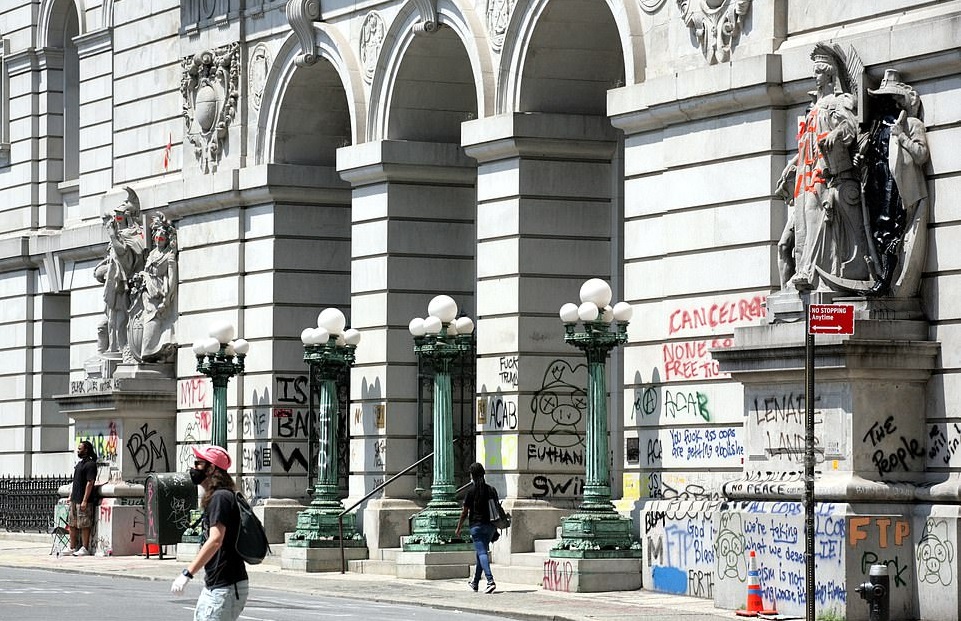 NYC City Hall protesters trashed the surroundings, barricaded subway entrances, and covered buildings in graffiti amid the ‘Occupy City Hall’ protest.