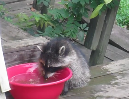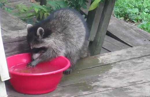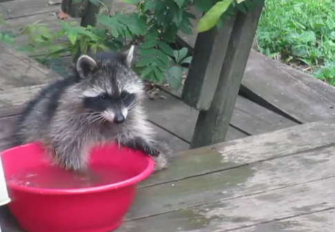 But this little adorable baby raccoon is not another example of animals who are not clever enough. After playing and getting exhausted, this adorable little raccoon had the perfect idea to cool down.