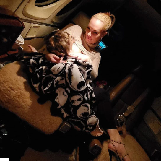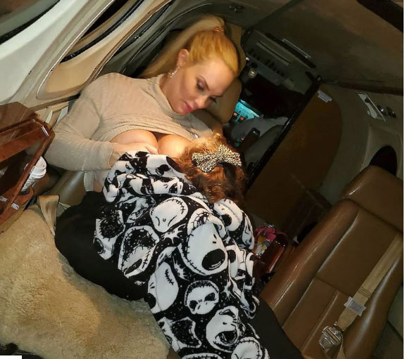 Mother of one shared a candid Instagram post about how 3½-year-old Chanel Nicole still breastfeeds, but mostly out of “comfort” now. The image shows she is nursing the little girl on a private plane.