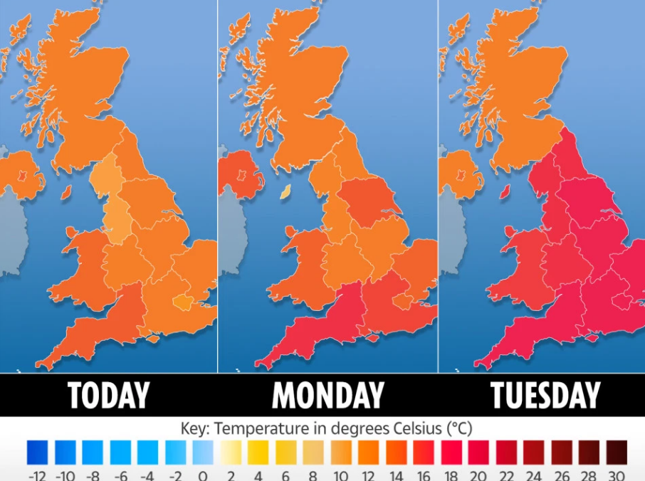 The mercury could rise to hit 26C as Saharan air will be following the fallout from Hurricane Dorian. The deadly Dorian could merge with Tropical Storm Gabrielle to cripple England in the next few days with 2ins rain and 70mph wind.