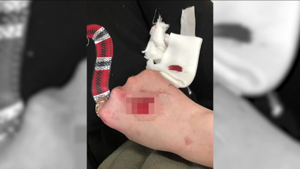 Not only did he slash her hand but had grabbed her by the neck, choking her and whispering, “Be quiet — be quiet I got a knife — and I just start screaming.” In the midst of it all is when it happened, splicing the middle of her hand open but she fought back, ripping off his mask in the process.