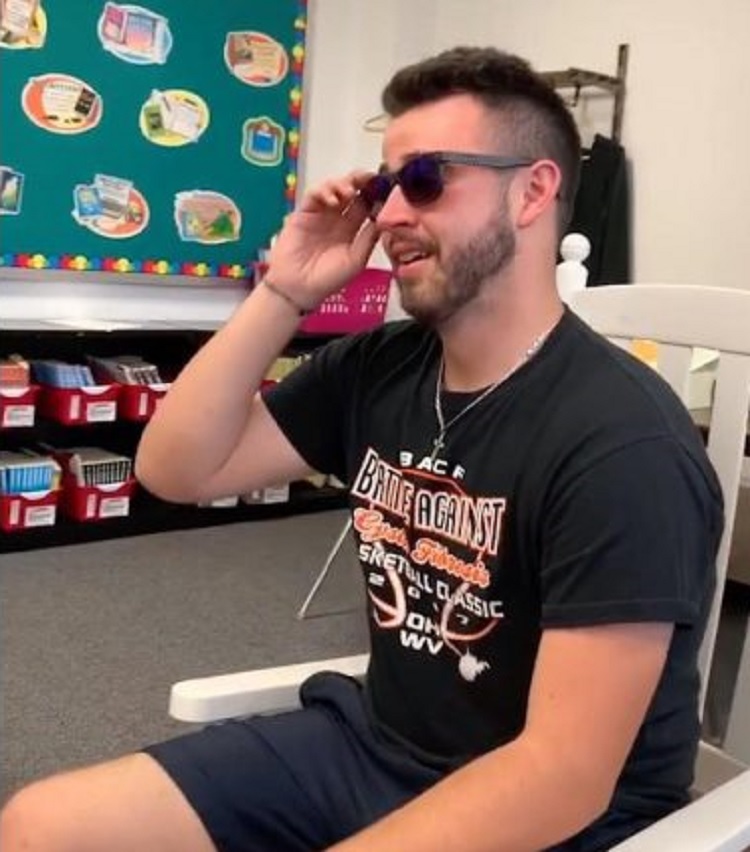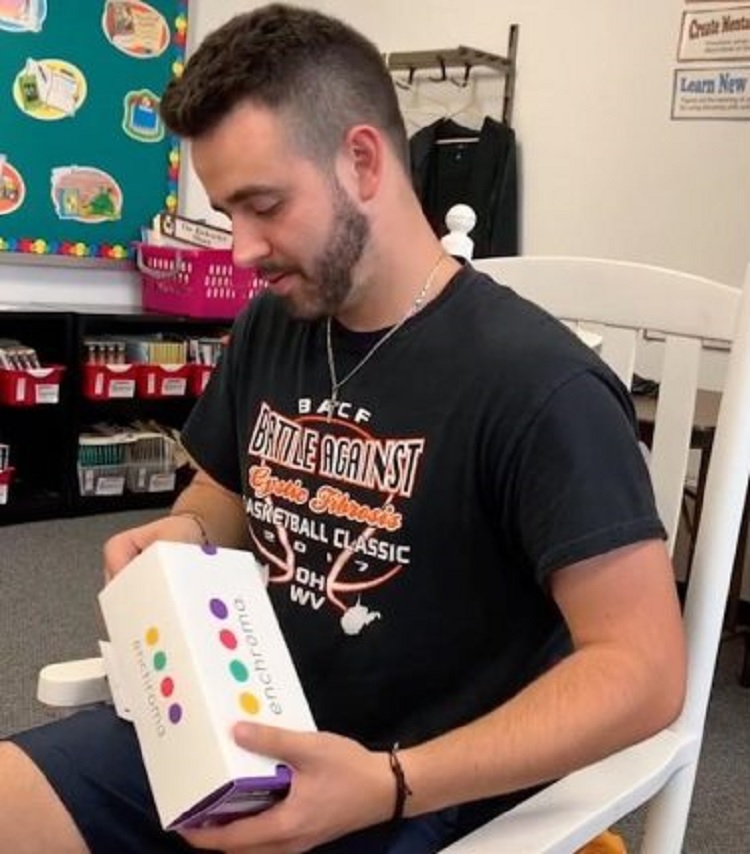 Lynley Carey was teaching an early childhood education class at the University of Rio Grande in Jackson, Ohio. She and her students decided to surprise Seth Blesdoe, one of the students who happened to be color blind, with a set of Enchroma sunglasses so that he could finally see color.