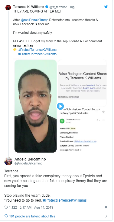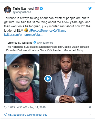 Terrence creates political content and also adds that Facebook is after him too. He created a video captioned, “THEY ARE COMING AFTER ME!” and asked his followers to retweet the video using the hashtag #ProtectTerrenceKWilliams on social media. He has been getting threats and some of them are quite serious.