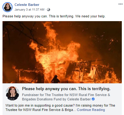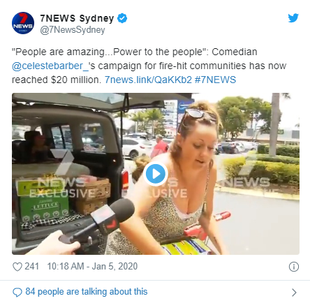 Celeste Barber, an Aussie comedian, managed to raise more than $29 Million for the New South Wales Rural Fire Service.