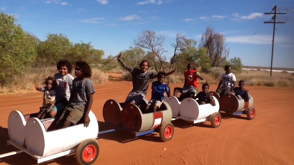 The tiny community of Punmu in the Pilbara, Western Australia built barrel train to get kids to school.