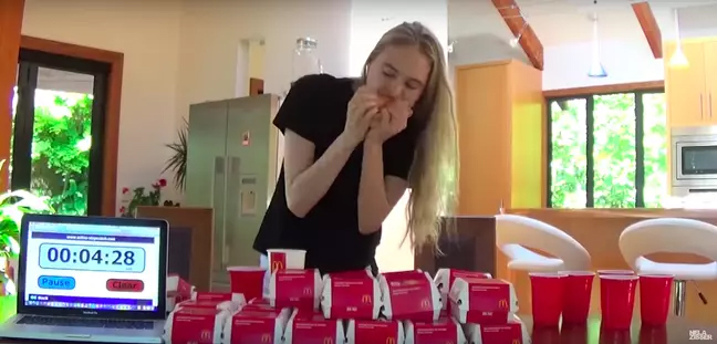 Nela has also recorded herself eating 22 Big Macs in under an hour, with 12,386 calories and nearly one kilogram of meat.