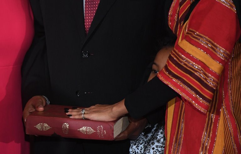 The American-Somali was later ceremonially sworn in on the Koran while holding Islamic prayer beads.