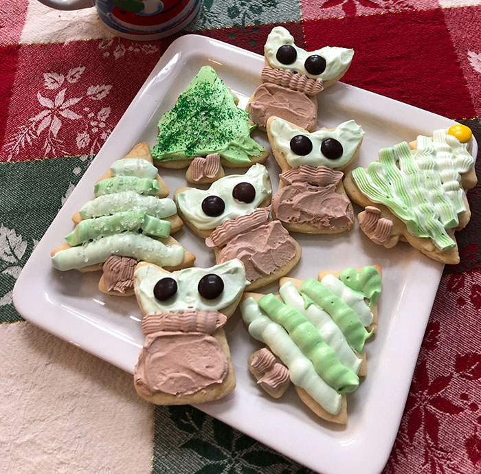 One Instagram user named Katy shared an amazing trick to turn the classic angel cookies into trendy baby Yoda shapes with just one simple step. “When you chop off the head of an Angel cookie-cutter it sorta looks like Baby Yoda!” She captioned the pictures.
