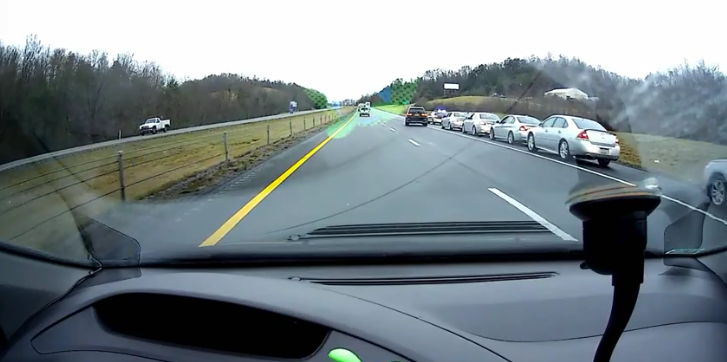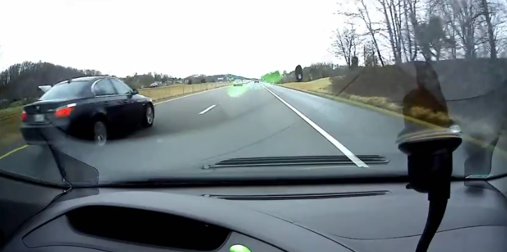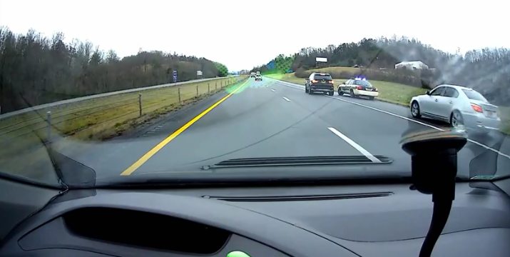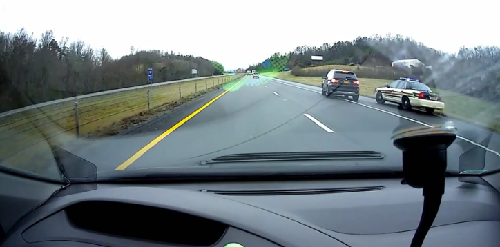 In the video that has been recorded on the dashcam of a car running on the same route, you can see about 5 cars going passing the camera with high speed and then there goes the police car.