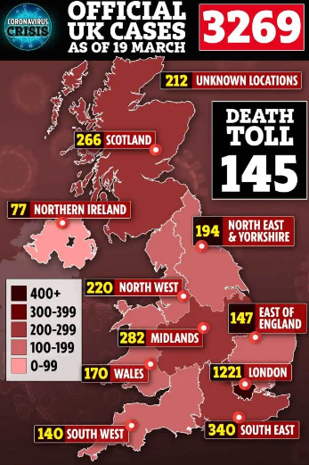 Covid 19 has affected around 3269 and killed 145 people in the UK. It has alarmed the government to take necessary actions to stop the virus from spreading.