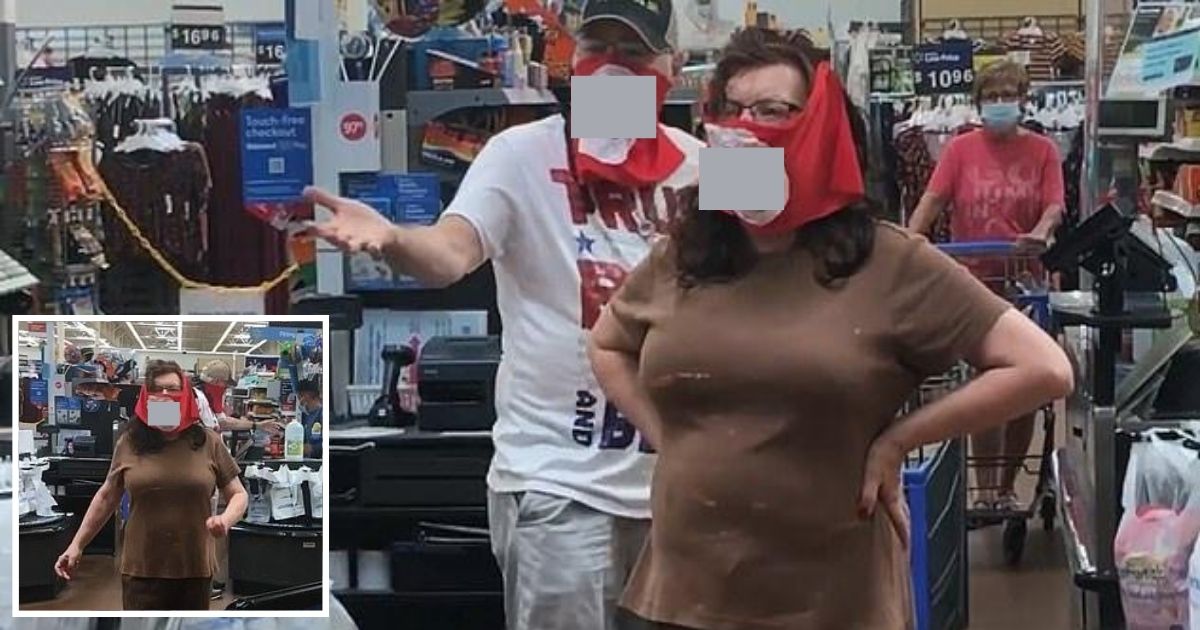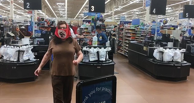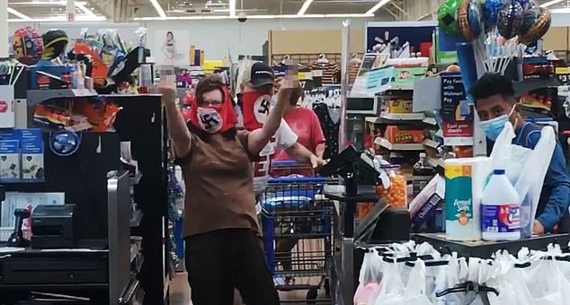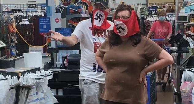 The incident occurred at a Walmart in Marshall, Minnesota, where a couple was caught on camera arguing with customers and flaunting middle fingers while wearing face masks with the Nazi symbol on them.