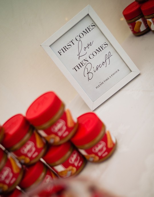 Not only this but guests were offered mini jars of spread as wedding favors, and there were Lotus Biscoff Krispy Kreme Doughnuts in the following day’s hangover breakfast for the guests.