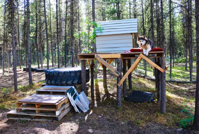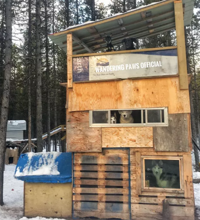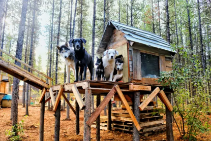 The couple lives with their 5 poaches in a big happy family. And because there are hardly any humans around, it was fair and great to build a playhouse for their dogs.