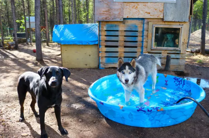 Rayn said that they have a huge fence system in and behind that is their playhouse. She said that in summer to add more fun, they even arrange a pool for the dogs.