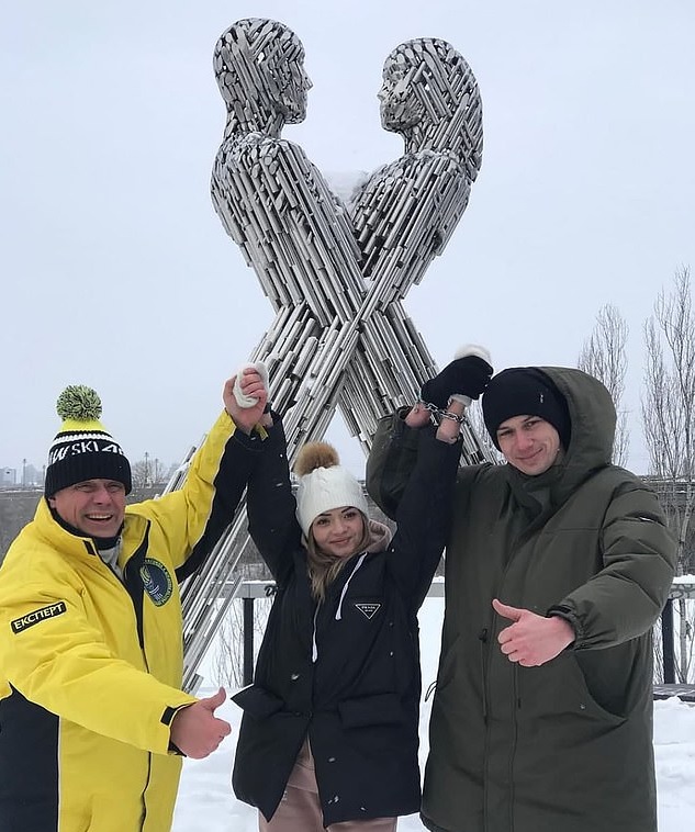 Officially starting their test, the couple made a promise to stay hand in hand, literally, while posing for a photo in front of the Unity statue in Kyiv.