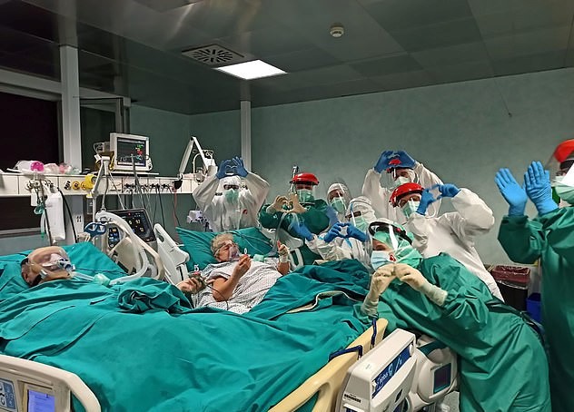 73-year-old Giancarlo and 71-year-old Sandra from Italy posed for a tear-jerking photo after the Murri Hospital staff arranged for the couple to be together on their 50th wedding anniversary.